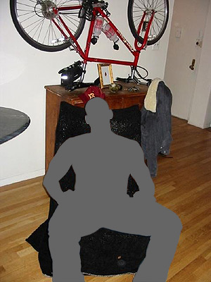 Is this furniture Jenga or something? So you flip your bike onto your cabinet then use the handlebar as a coat hanger? Those lily-white walls are just begging for a tire mark.