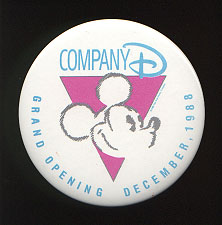 This not-so-subtle pin was for the opening of the cast member (employee) store. The obvious gay pride triangle was later changed to a skewed retro 50's shape.